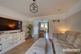 * A composite front door welcomes you into the entrance hallway, with door to the WC, stairs rise to first floor and a door leads into the living room which overlooks the front aspect, benefitting from a feature log burner and has an archway through to the formal dining room