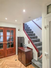 The reception hall has stairs to the first floor, glazed panelled double doors to the lounge/dining room and doors leading in turn to the second reception room and ground floor shower room.