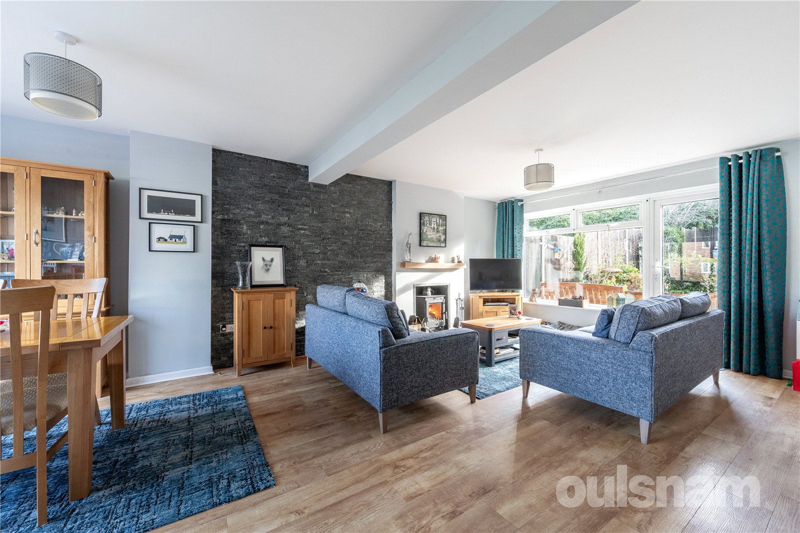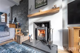 A secure, enclosed porch opens into a welcoming entrance hallway with a useful storage cupboard, leading through to the generously sized, dual aspect lounge, complete with a cosy log burner, LVT flooring and a double glazed door leading to the rear garden.