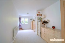 The generously pro-portioned light and airy principal main bedroom is perfectly placed to the rear of the property benefiting from a range of floor to ceiling full width fitted wardrobes, en-suite shower room and has patio doors to the garden enjoying excellent views.