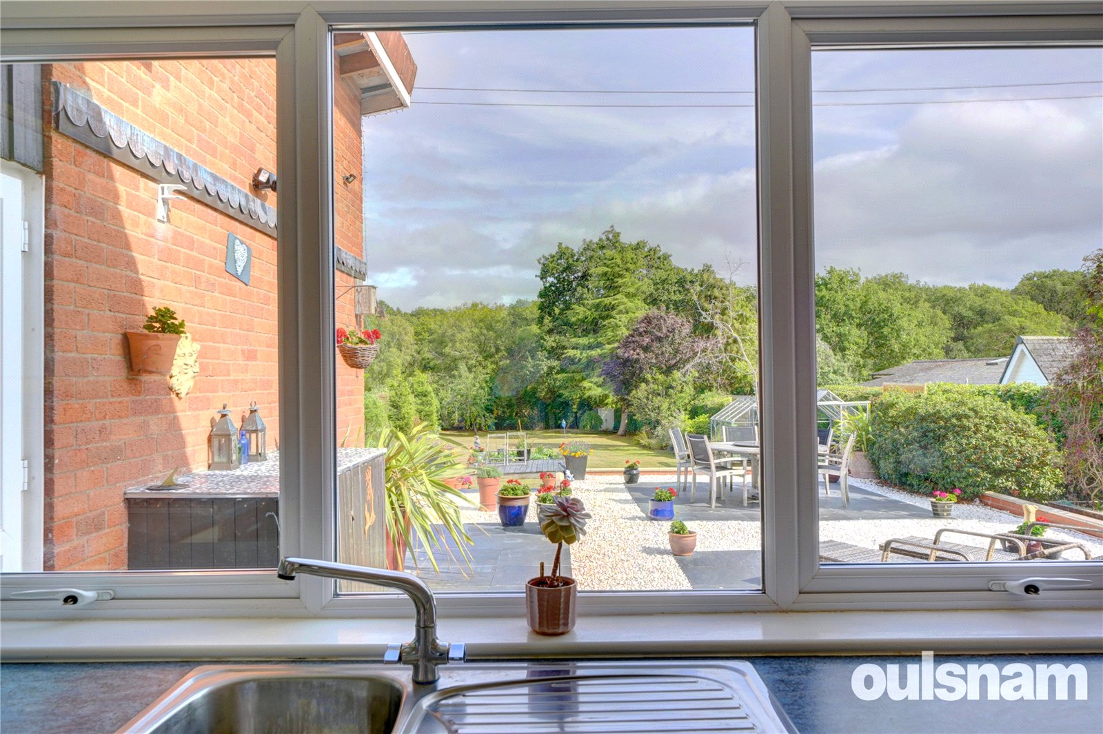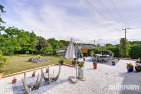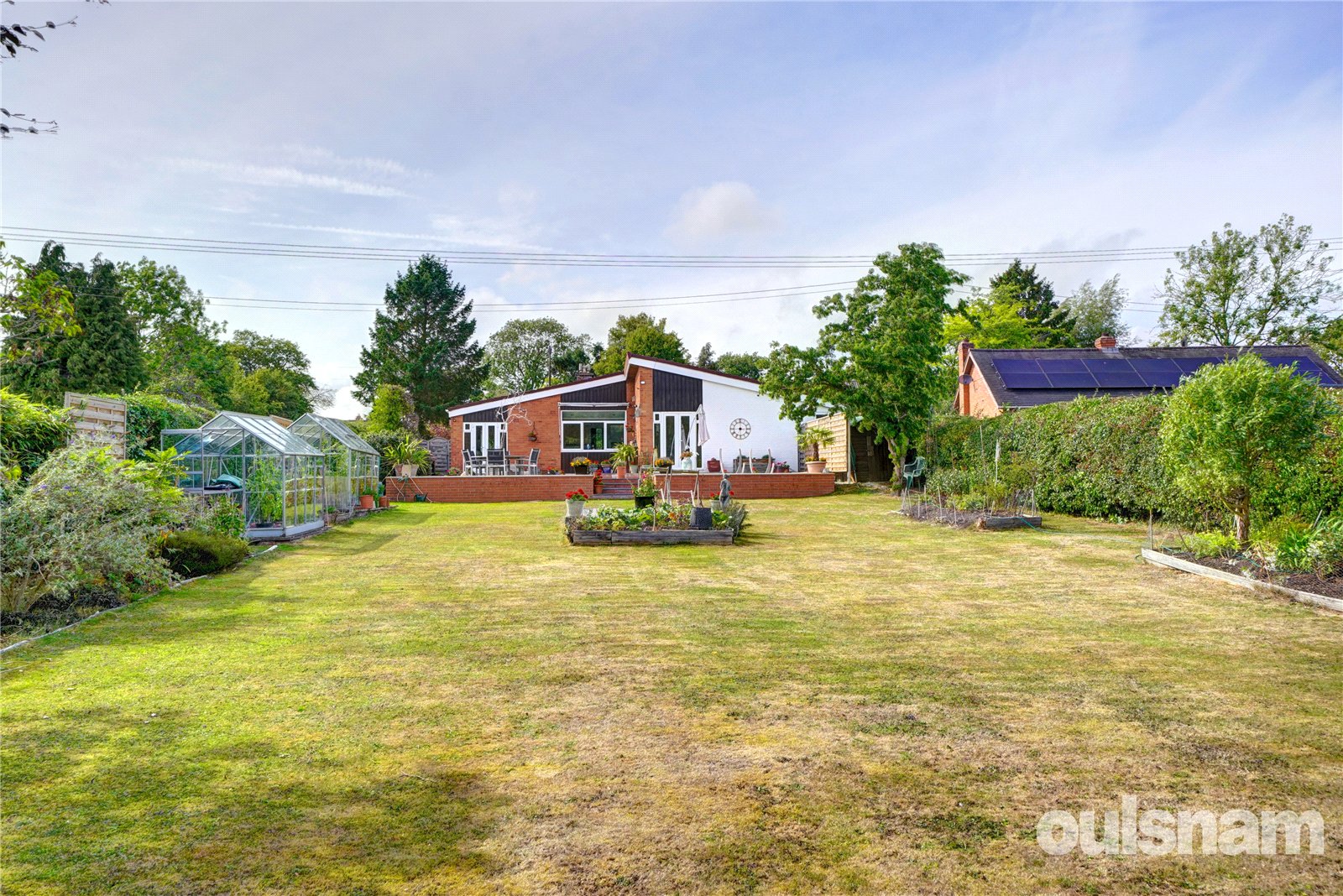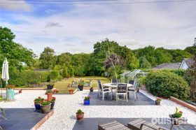 The property is well set back from the lane behind a substantial front garden laid to lawn bordered by mature hedgerow. A gated three car driveway gives access to the integral garage with roller door. There is a side gate to the magnificent south facing rear lawn gardens, featuring an abundance of well-established borders, fantastic landscaped paved patios which provides plenty of great space for outside entertaining and relaxation, timber decking and two greenhouses. The garden which adjoins countryside, enjoys maximum sunshine and a high degree of privacy.
