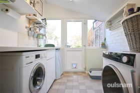 * Utility with plumbing for washing machine, space for dryer and providing access to the garden