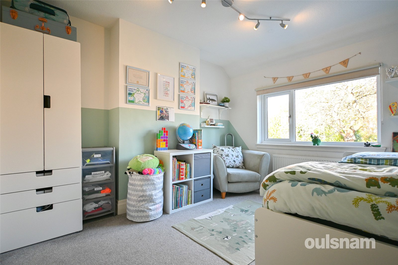 Bedroom One 4m into bay x 2.74m" + Wardrobes