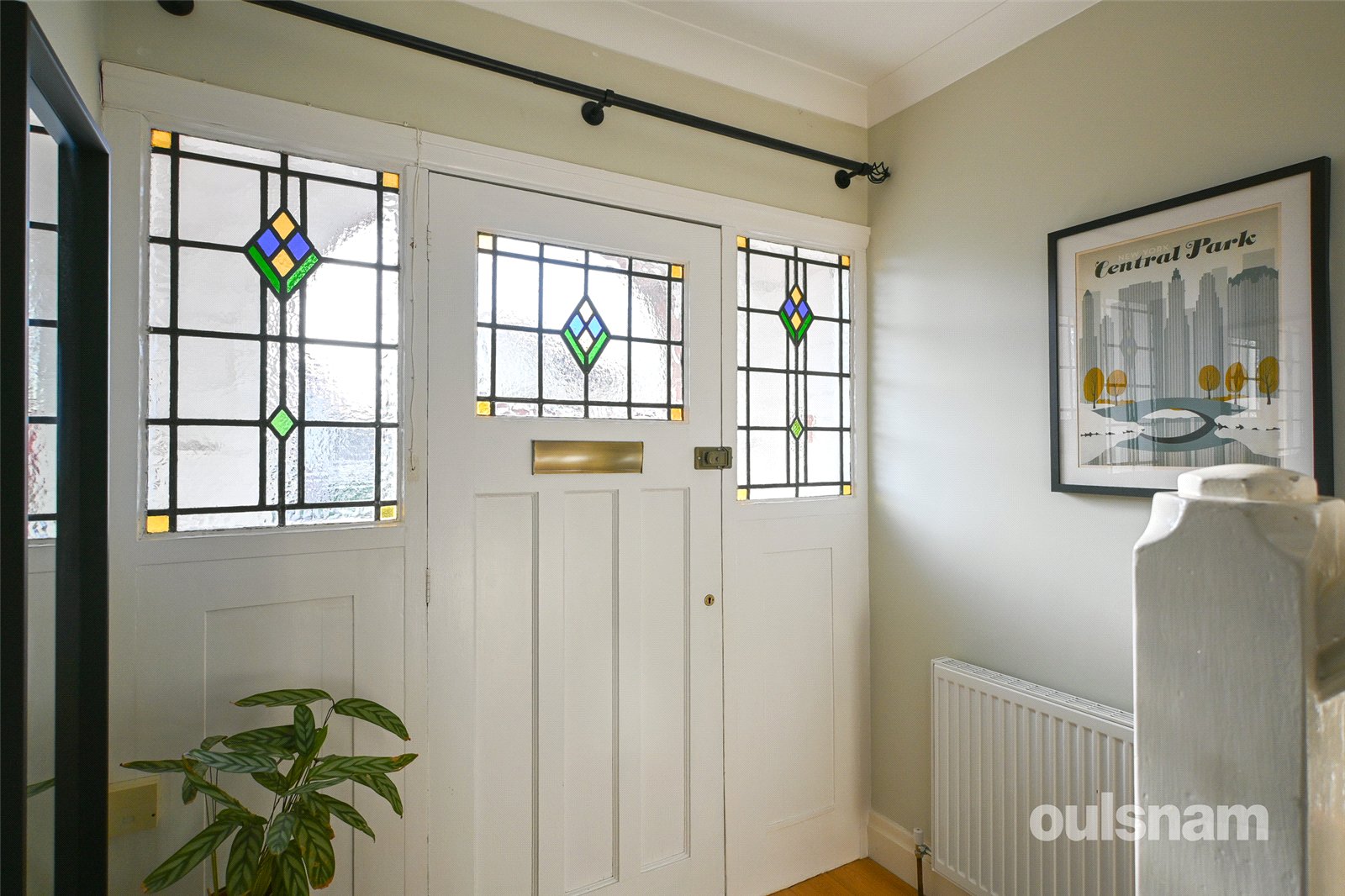 * Welcoming entrance hallway with original stained glass windows and door