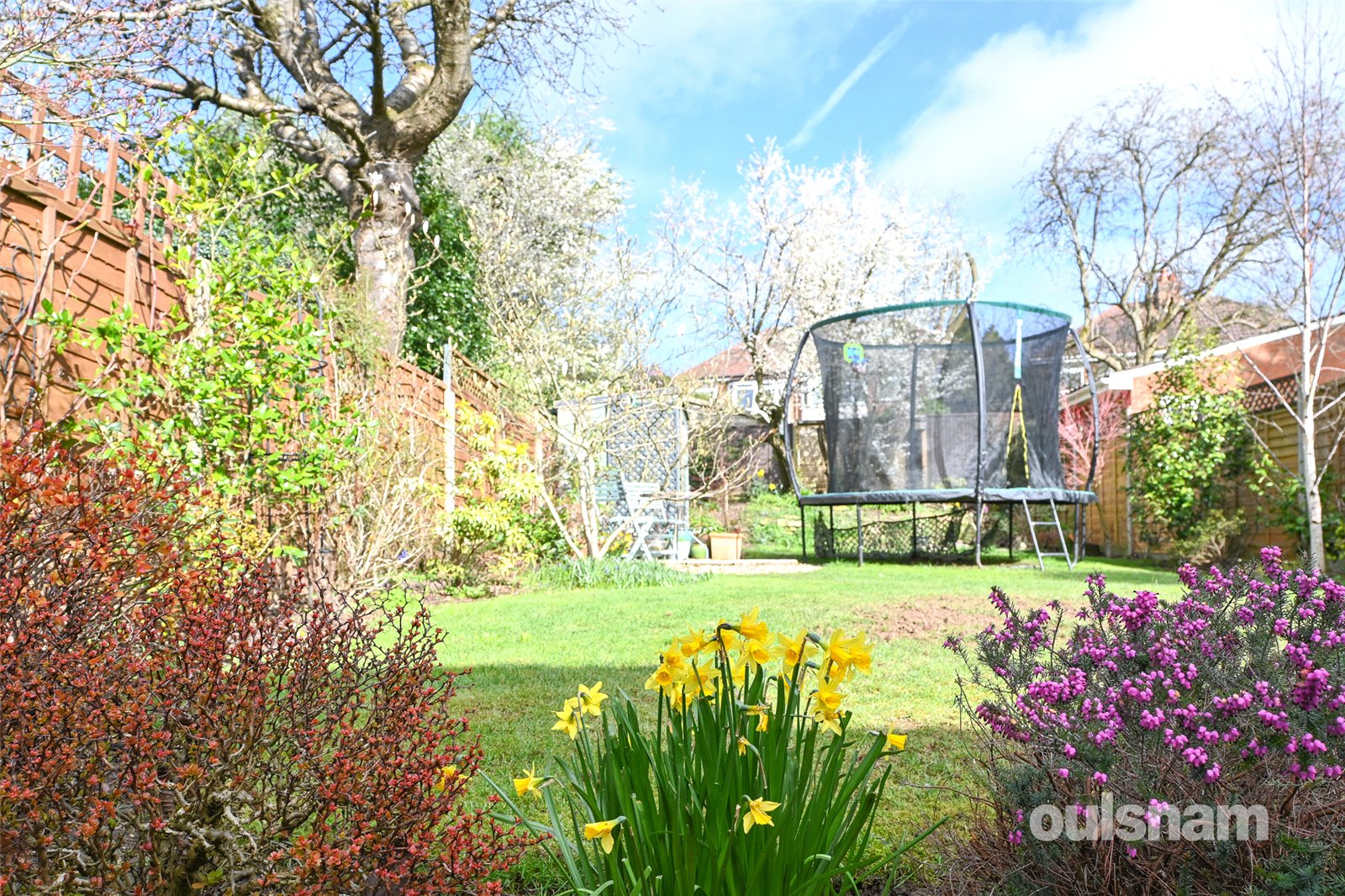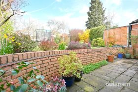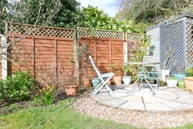 * A delightful rear garden with patio space, an established lawn and mature planted borders