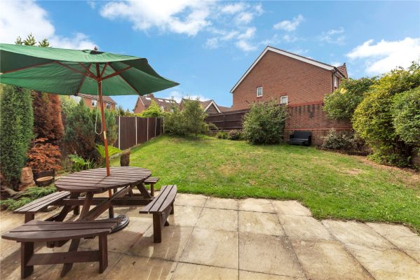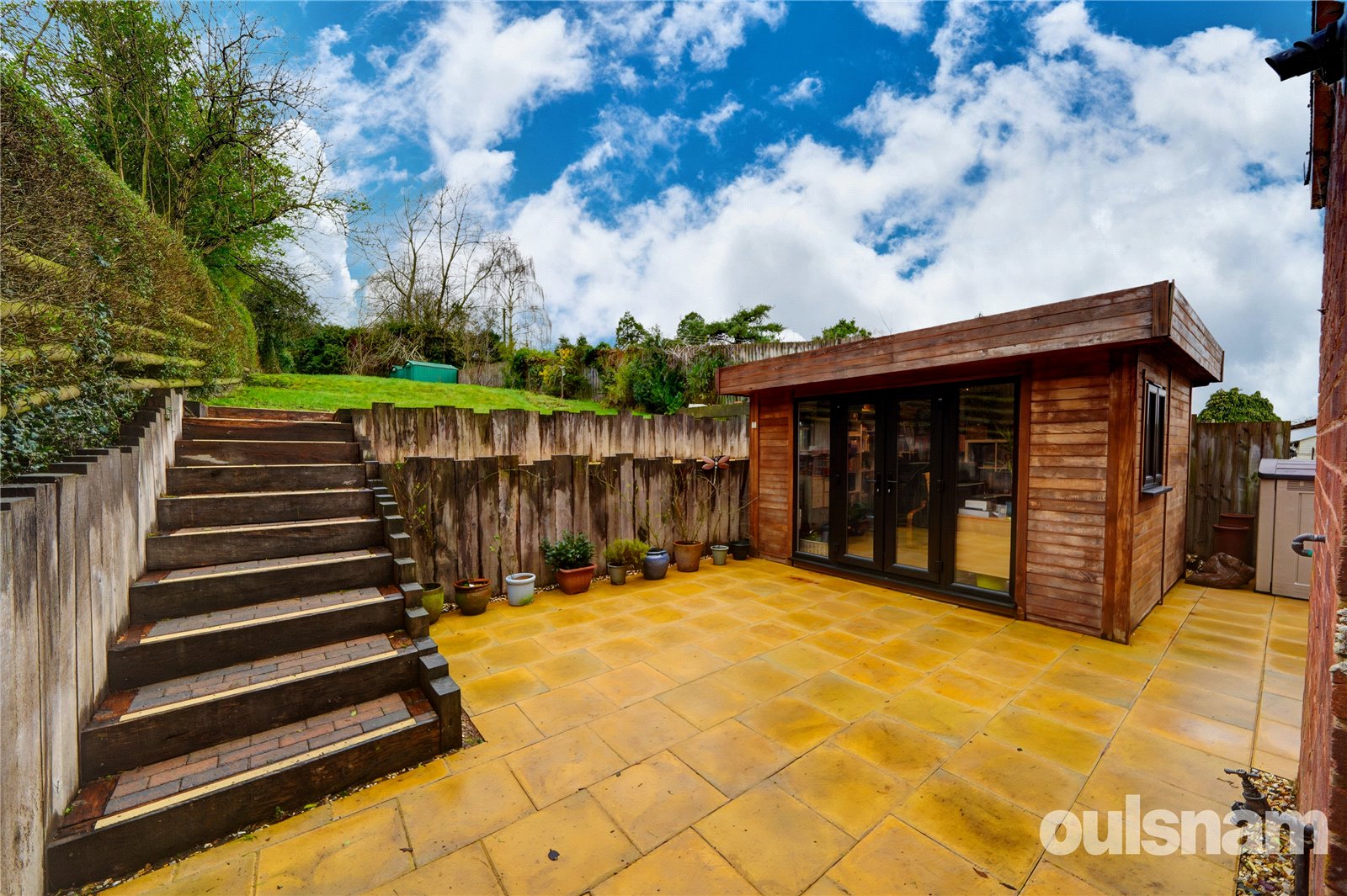The rear garden is a particular feature of this lovely family home, with paved patio, and a purpose built garden office/gym,. This outbuilding is fully insulated and has power. The garden itself is mainly laid to lawn with a selection of some established plants and shrubs.
