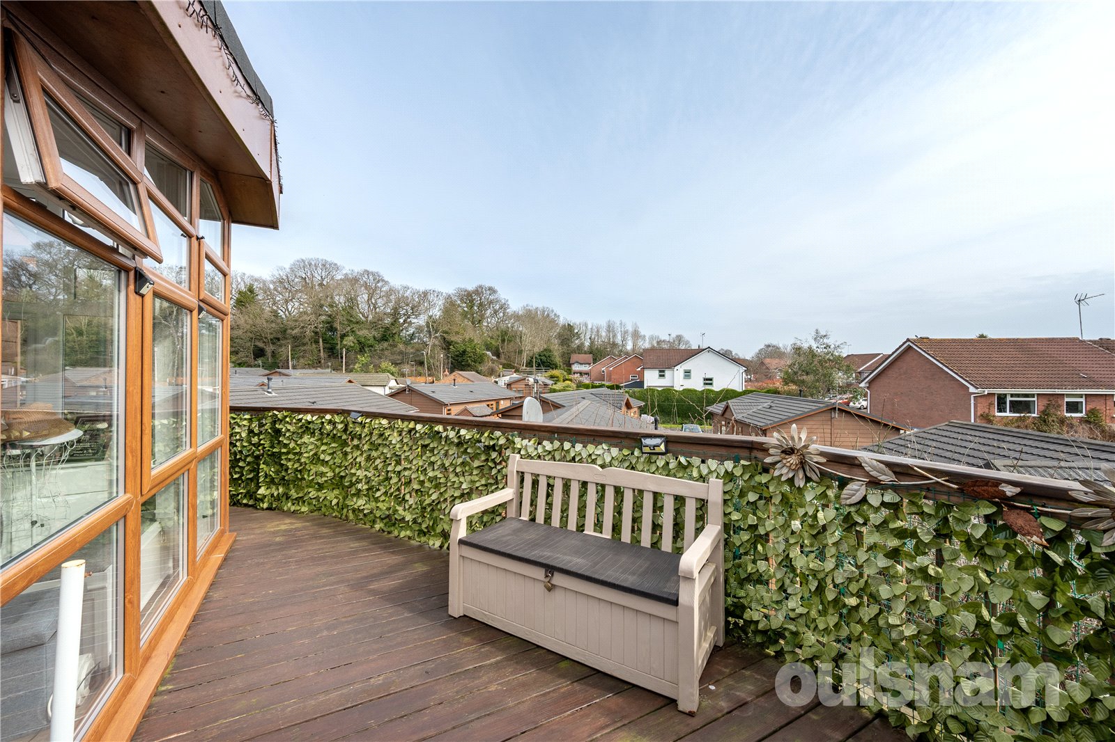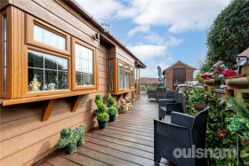 The wrap around decked area, offers an ideal space to relax and entertain. Offering a secluded, yet elevated position. The garden space benefits from a brick built storage shed, electrical power sockets and garden tap.