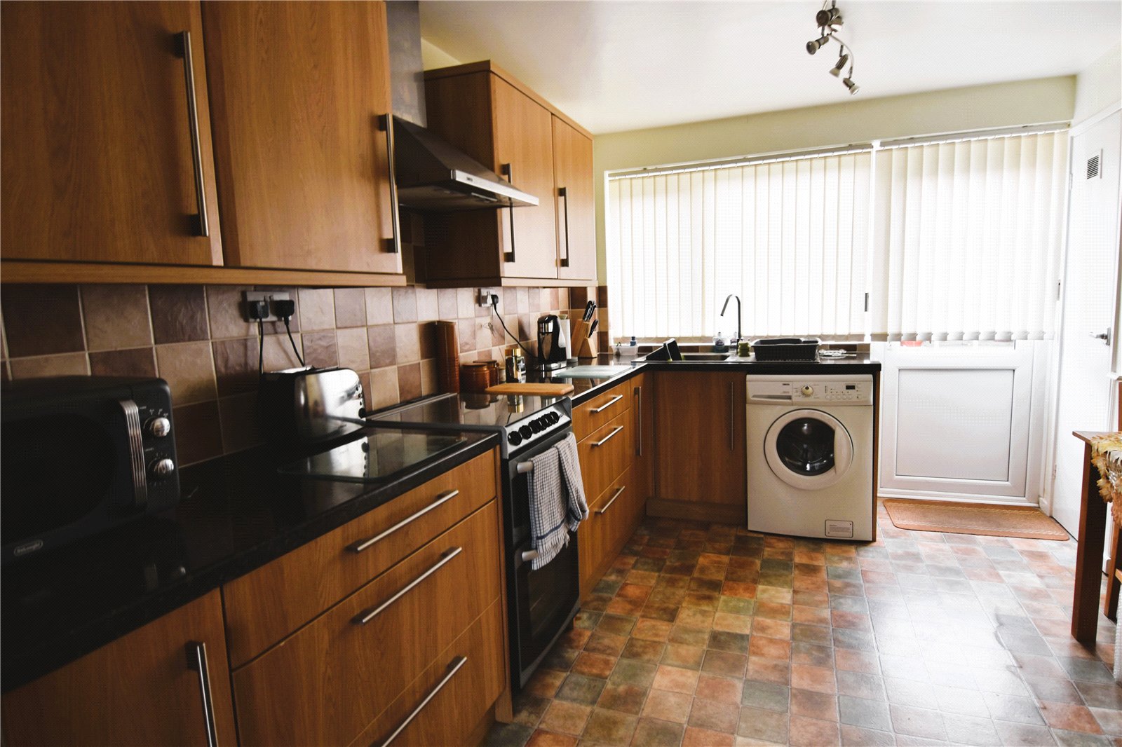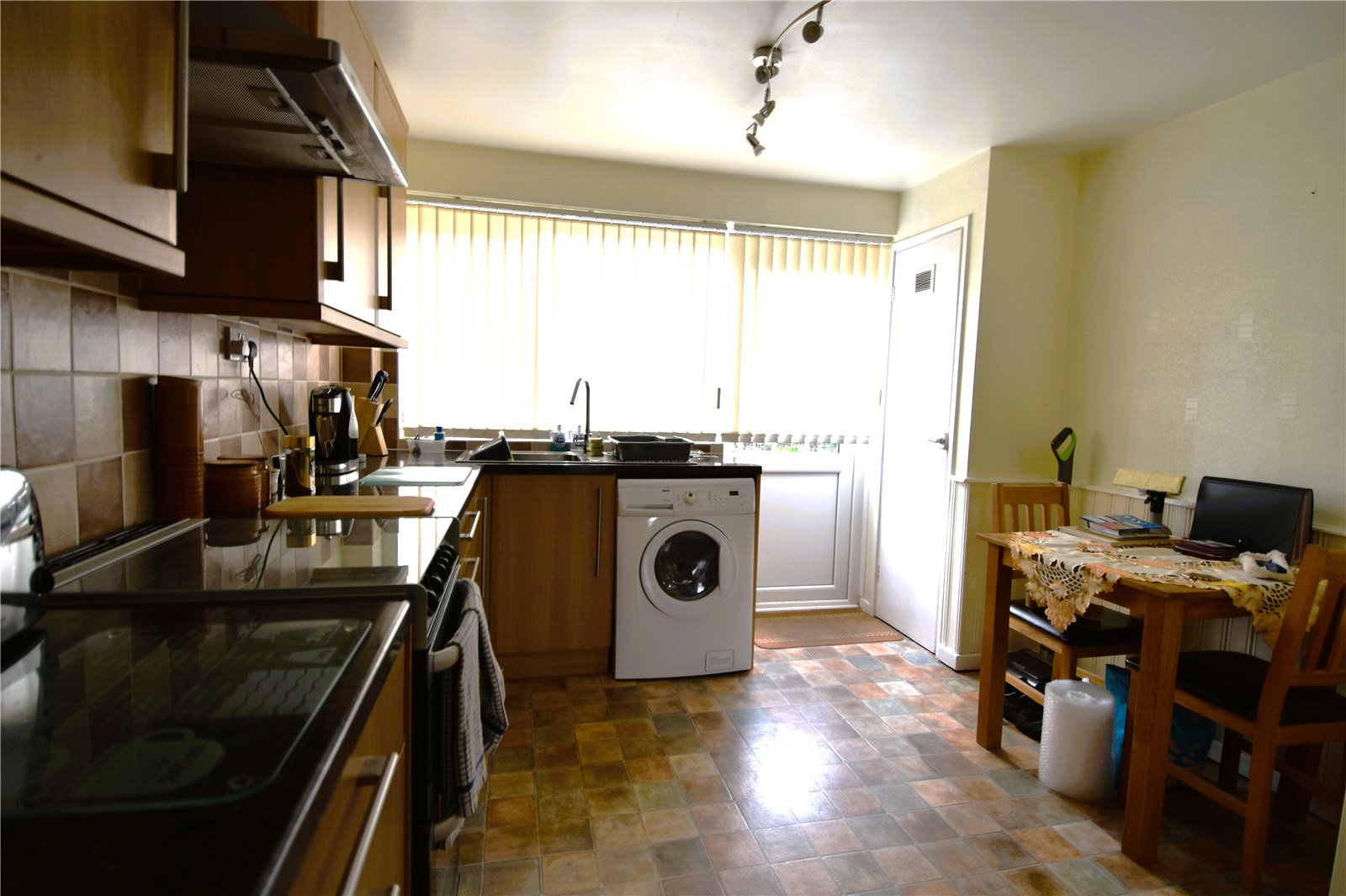 * Fitted kitchen diner with a range of wall mounted and base units, space for freestanding appliances, double glazed door provides access onto the rear garden, doors into pantry/storage cupboard, living room and porch entrance