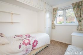 Bedroom Two with double glazed window, storage heater and fitted wardrobes.