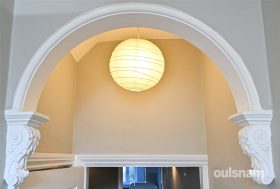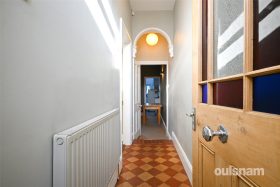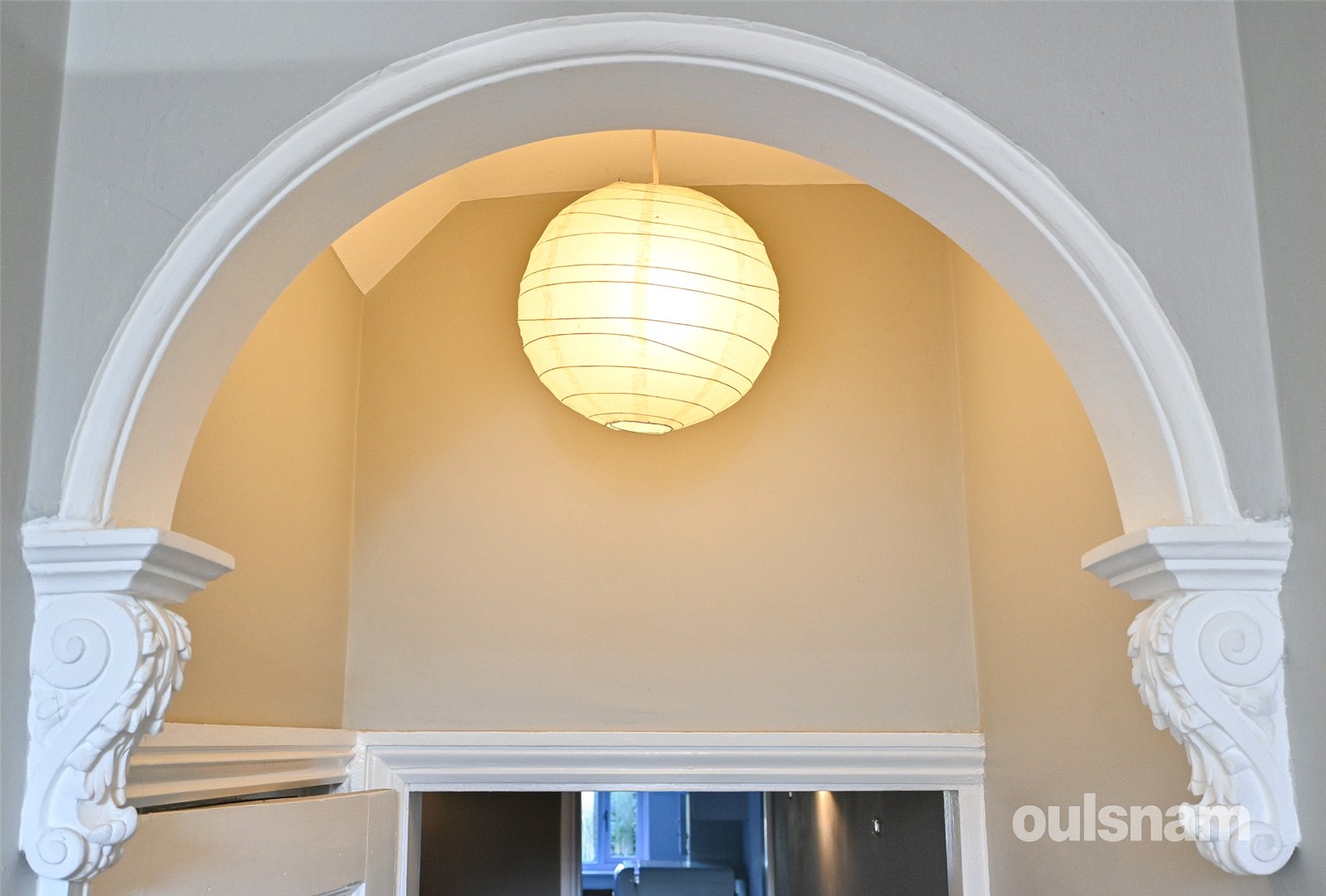 * Vestibule entrance and hallway with Minton tile flooring and decorative archway