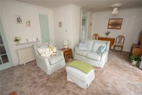 The spacious lounge/dining room has a secondary glazed door and window leading out to an attractive balcony overlooking the communal grounds. There is ceiling cornicing, a door to deep storage cupboard and glazed panelled door leading to the kitchen.