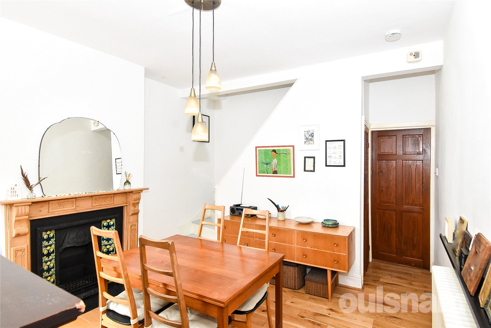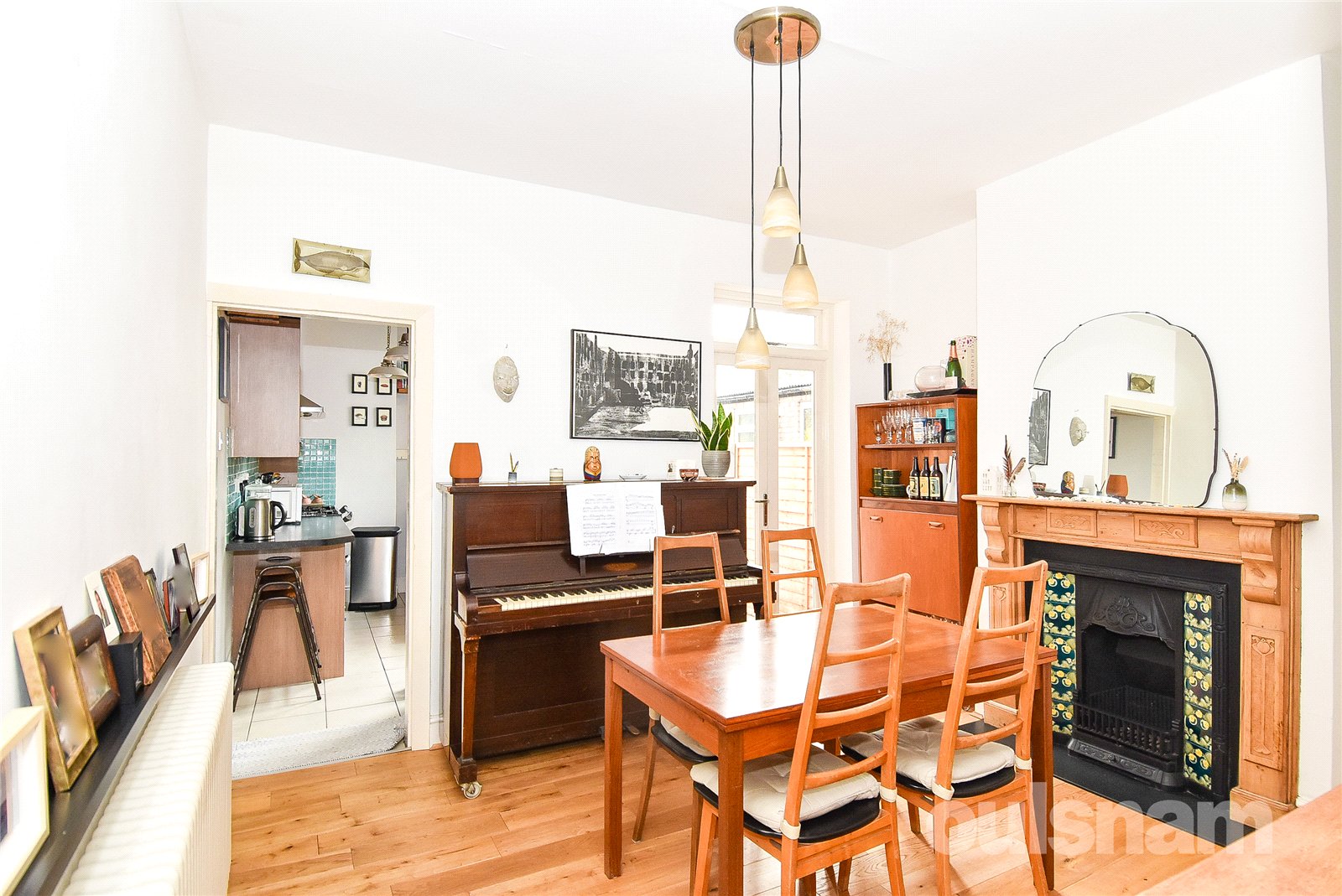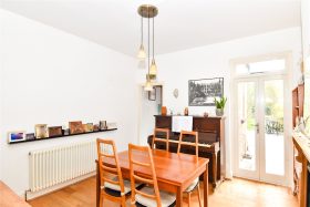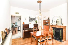 * The second reception room offers a versatile living space, featuring a staircase rising to the first floor and a characterful fireplace serving as a focal point. Patio doors open directly onto the rear garden, allowing for an abundance of natural light and a seamless connection to outdoor space, while the room also provides convenient access through to the kitchen.
