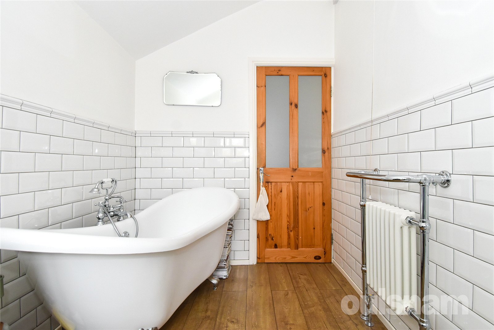 * The first floor bathroom is stylishly appointed, comprising a low-level W.C., vanity wash hand basin, walk-in shower, and a freestanding bath, offering both practicality and a touch of luxury.