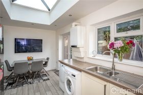* Kitchen diner to comprise of a mixture of wall and base units with worktops over with inset stainless steel one and a half bowl sink drainer, inset electric hob with cooker hood over, integrated electric oven, space for American style fridge freezer and space and plumbing for a washing machine and dryer, roof lantern to ceiling with lighting around the perimeter allowing ample natural light, double glazed window to the rear, double glazed French doors leading out to the garden,