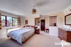 Spectacular dual aspect Principal main suite fitted with a range of bespoke fitted floor to ceiling wardrobes, opening through to the dressing area with wash hand basin set into vanity unit and a door into the walk in wardrobe and luxury en-suite bathroom benefitting from bath and shower over.