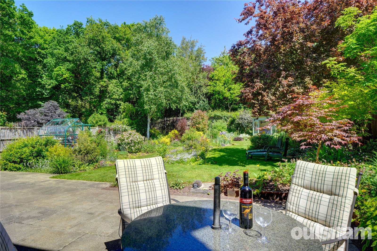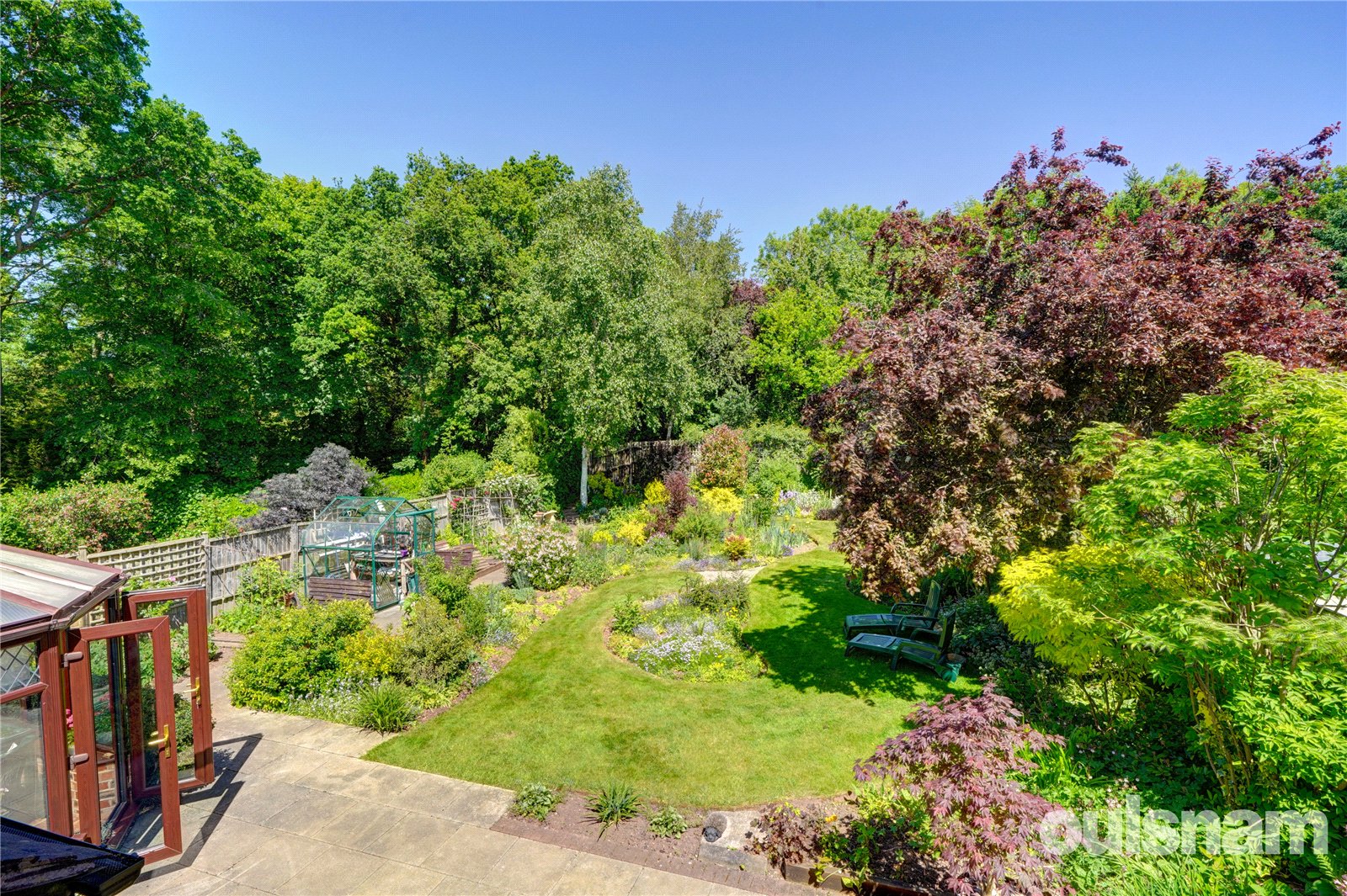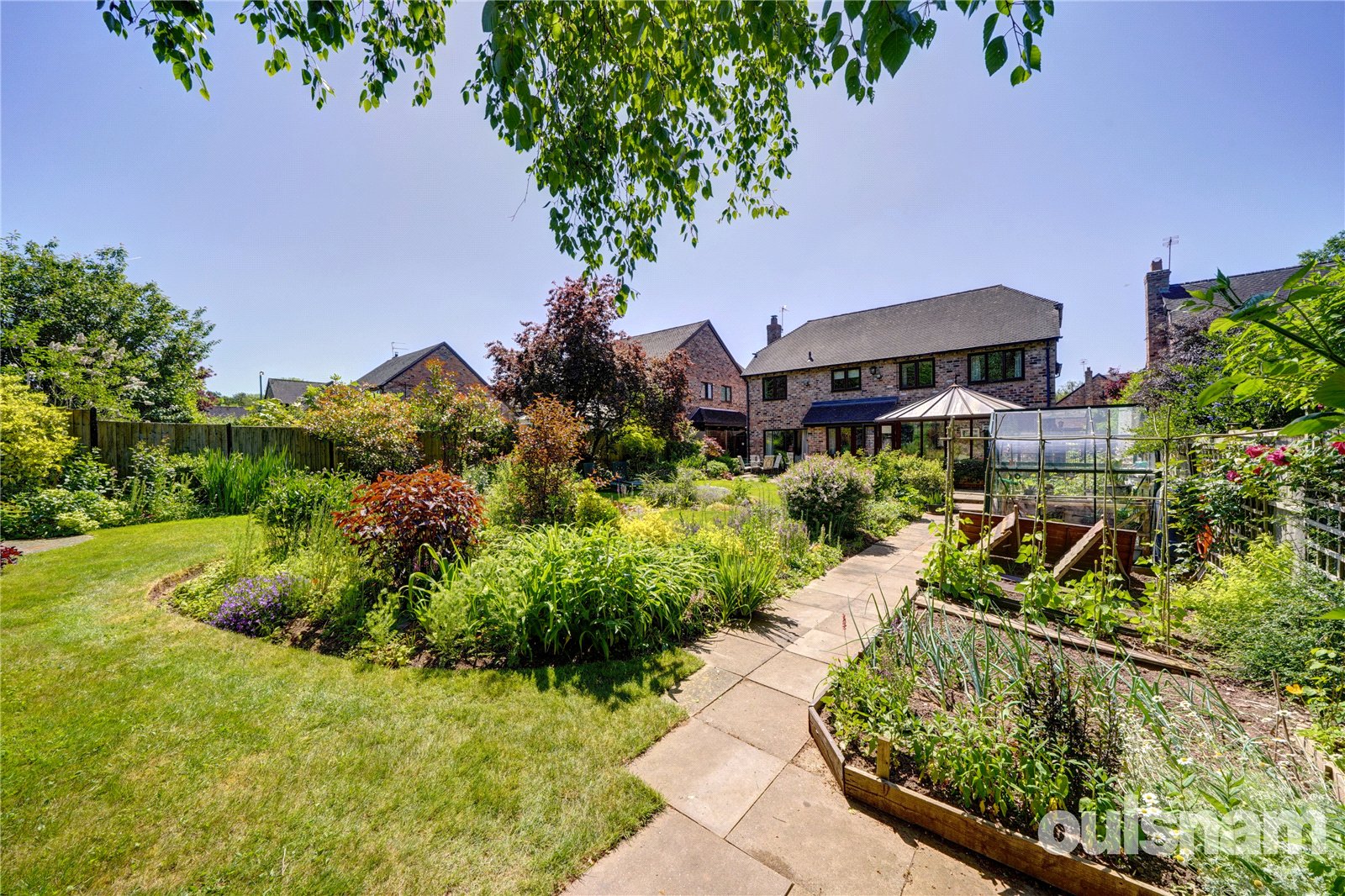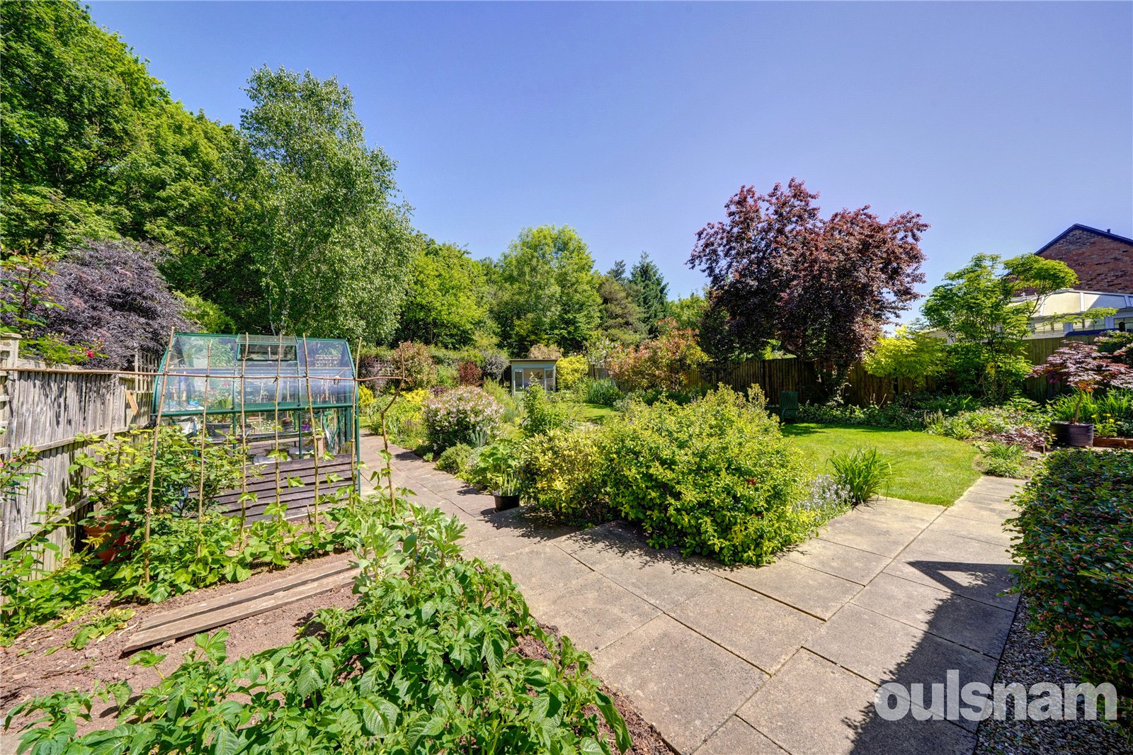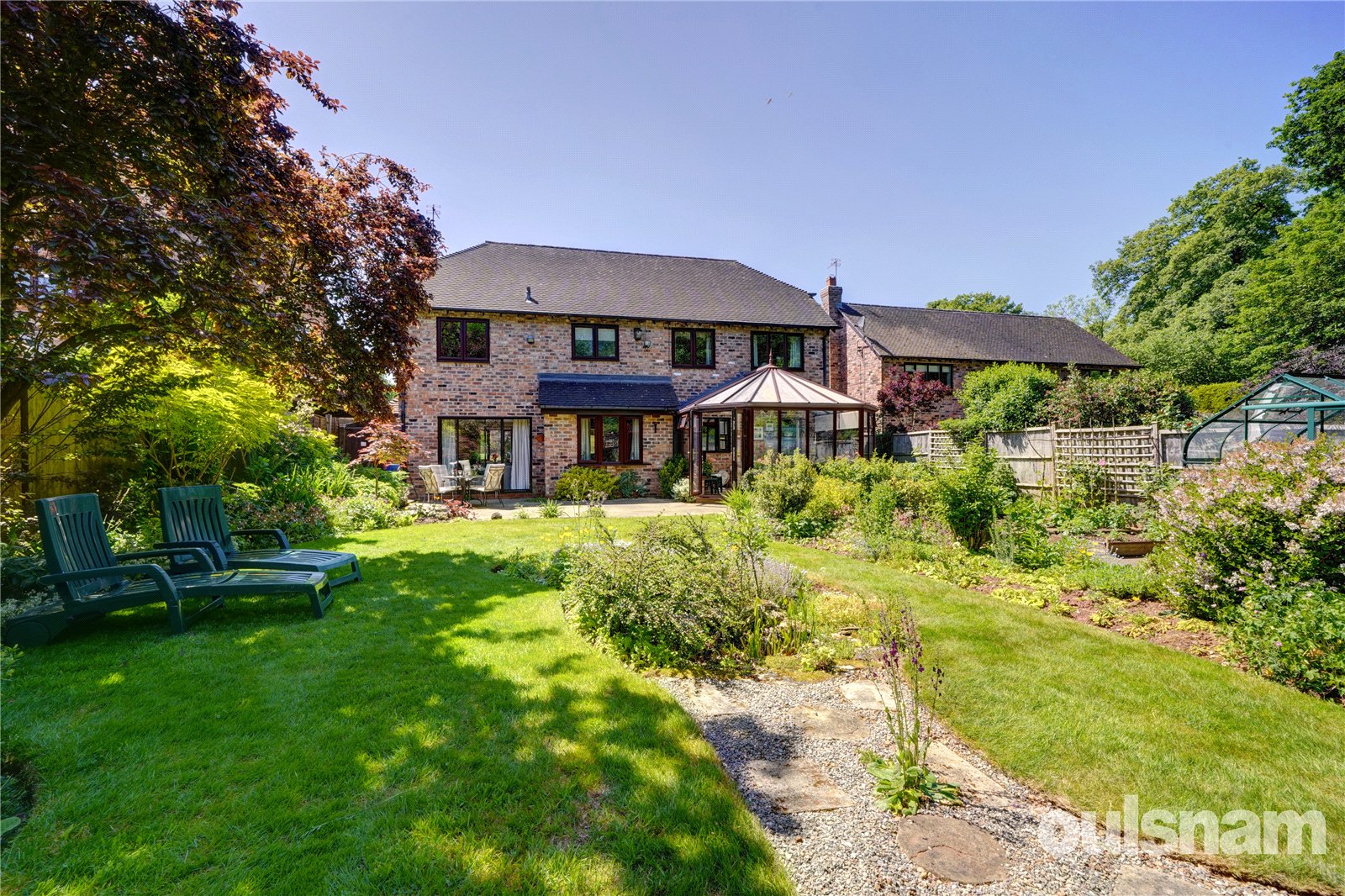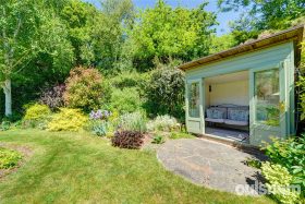 The stunning generous landscaped rear gardens featuring a generous paved patio area ideal for al-fresco dining and paved pathway to the left hand side extends to the rear of the garden with vegetable plot to the side and a greenhouse, a summer house to the corner of the garden and rear gate. The remainder features lawn areas with an abundance of well stocked flowerbeds and borders containing a wealth of mature trees, plants and shrubs with mature woodland beyond.