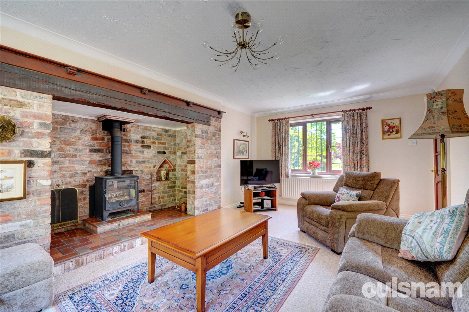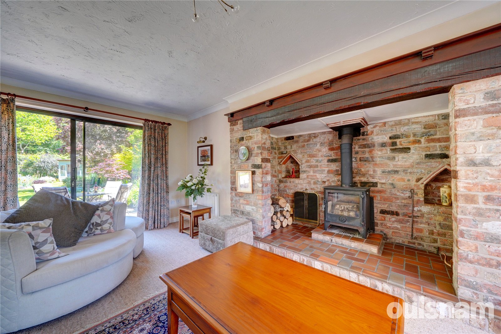 Dining Room overlooks the rear garden and has double doors leading into the dual aspect living room which features an impressive Inglenook fireplace with log burner.