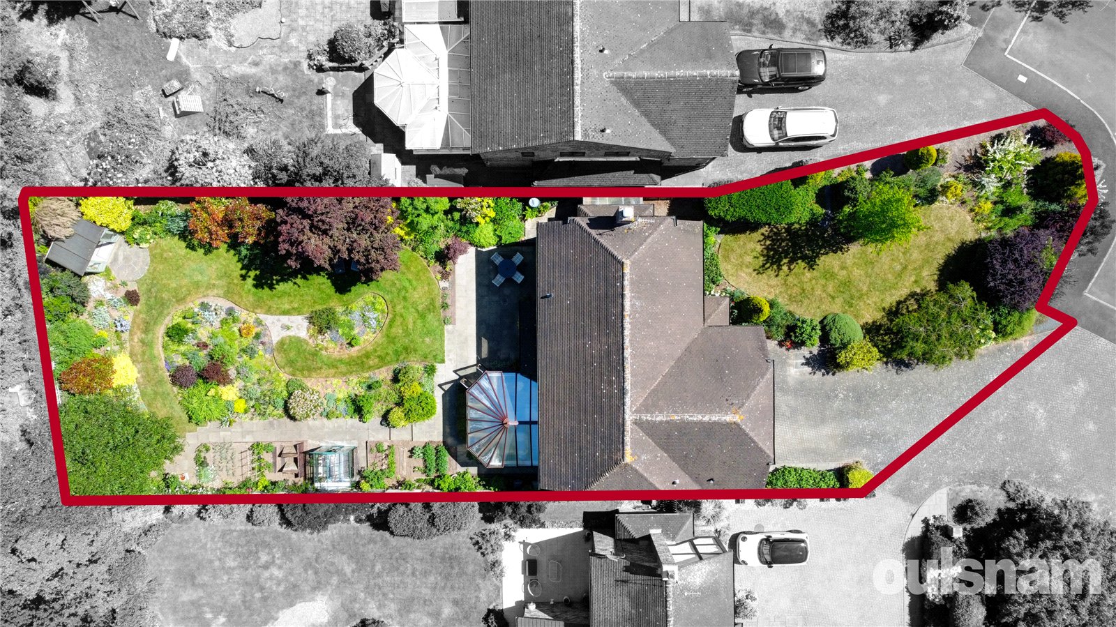 The property is approached over a block paved driveway which provides ample parking for several vehicles and leads to the front entrance porch with a beautiful lawn fore garden to the front right hand side featuring an array of flowers, trees and shrubs and paved pathway leads to the side gate.