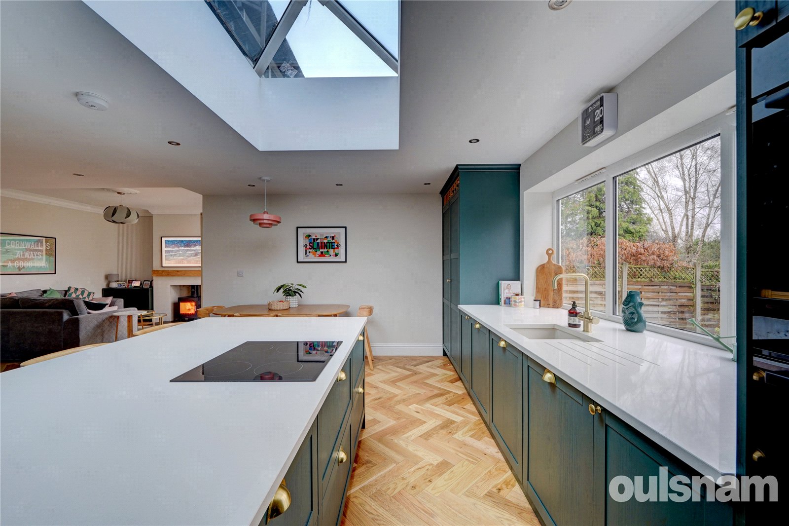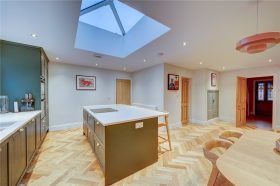 • Greatly Improved by the Current Owners to include an extended open plan Family Room/Kitchen/Diner with attractive herringbone flooring, log burner, skylight and bi-fold doors to the Rear Garden
