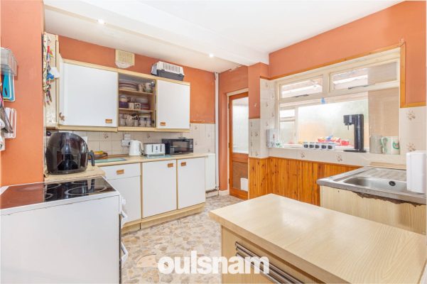 • Kitchen with a range of fitted units, built in cooker and hob and spaces for washing machine and tumble dryer