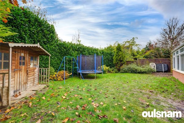 The attractive South facing rear garden features an initial paved patio area with the remainder laid to lawn, bordered by flowers, trees and shrubs and enclosed with wooden panel fencing, raised planters, a further paved seating area with pergola to the left side, pathway round to side and timber shed to the right hand side and there is side gate providing access to the car port, door into useful brick store cupboard and door into the rear of the garage.