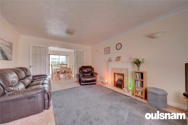 Generous living room overlooks the front aspect with feature fireplace, door into the open plan kitchen diner and has patio doors into the conservatory which is brick built base and UPVC double glazed construction, with French doors providing access onto the rear garden