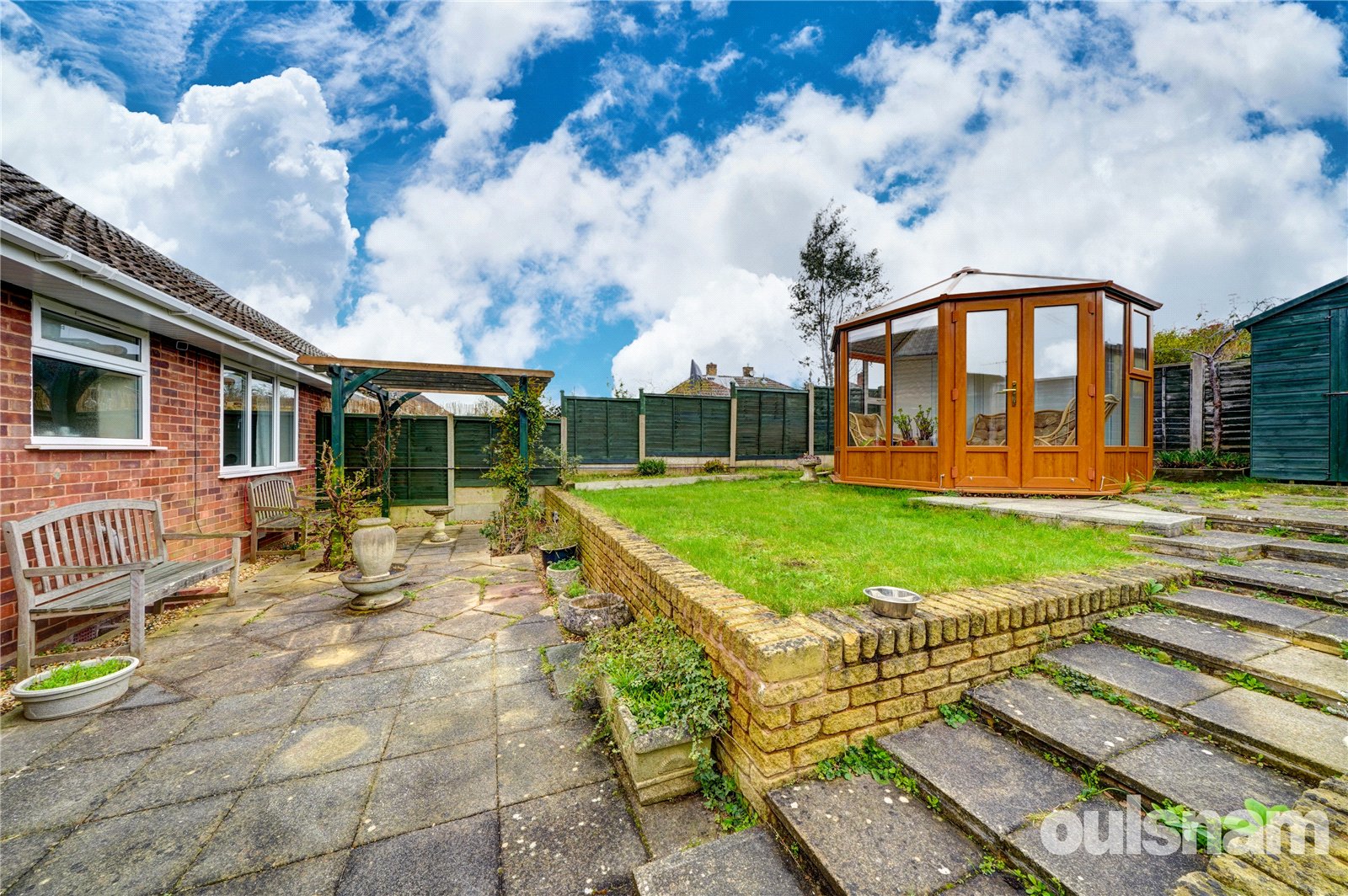 * Beautiful rear garden which has a paved patio area, steps lead to the remainder which is lawned. There is a detached summer house and a shed.
