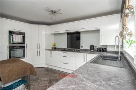 * Kitchen/Diner which has a mixture of wall mounted and base units with worktops over with an inset composite sink drainer. There is an integral double electric oven and grill, fridge/freezer, dishwasher, a five burner gas hob, extractor hood and a washing machine. There is a generous larder, two windows looking out to the rear and a door out to the rear garden