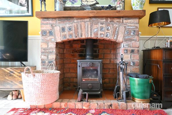 Living room which has a log burner and sliding doors used to access the rear garden.