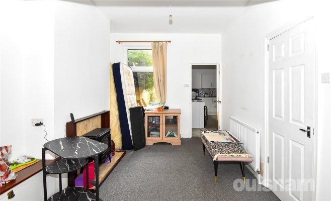 * A well-proportioned through reception room offering generous living and dining space, enhanced by a bay window to the front that floods the room with natural light.