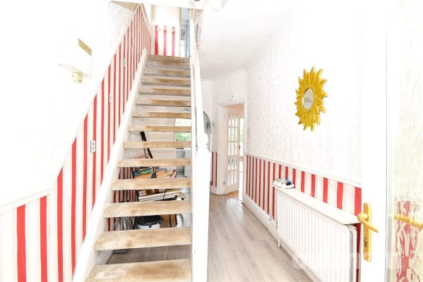 * A welcoming entrance vestibule provides a practical introduction to the home, offering space for footwear while helping to keep the main living areas warm and private. A glazed internal door leads seamlessly into the central hallway.