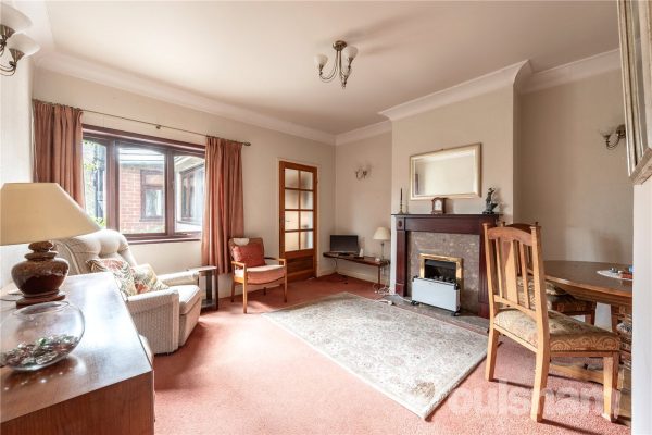 Sitting room which has a feature fireplace with an inset gas fire and a window looking out to the front.