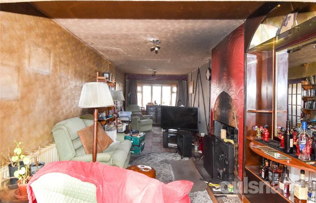 * The property has two reception rooms: a front room with a bay window and a rear room with patio doors leading into the conservatory, providing bright and flexible living space.