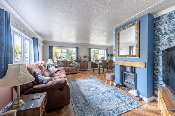 • Generous sized lounge/diner with feature electric log burner, with attractive mantle and triple aspect windows